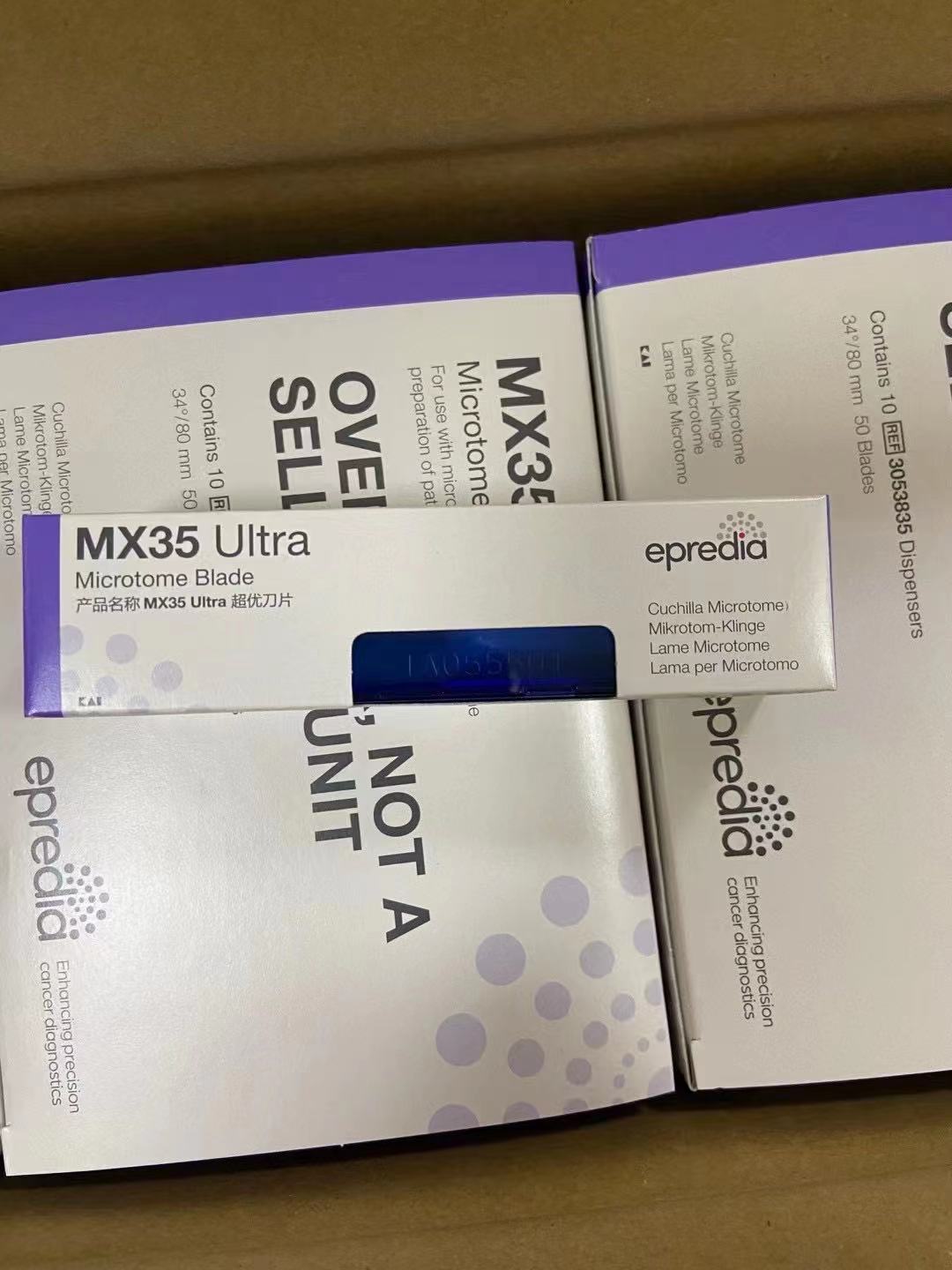 在組織病理學流程中,組織蠟塊需要通過組織切片機切割成極薄的組織切片。一次性刀片的性能對最終切片的質量起到極大的影響。 Thermo Scientific 通過優化的鋼材、刀刃角度及包被技術,為用戶提供 MX35 優加及MX35 超優一次刀片,在全球范圍廣泛受到認可。
